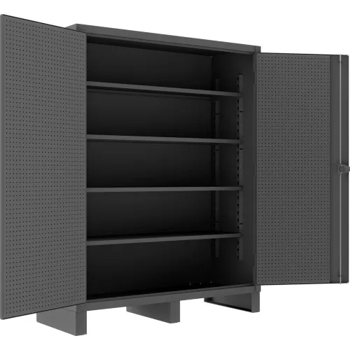 Durham Mfg.® EHD Pegboard Cabinet, 12 Ga., 4 Adj. Shelves, 60"W x 24"D x 78"H,Pad-lockable,Gray