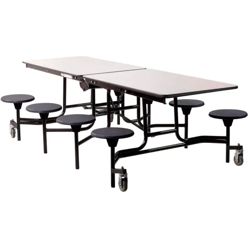 NPS® Mobile Cafeteria Table With Stools, 97"L x 59"W, Gray Top/Black Stools/Black Frame