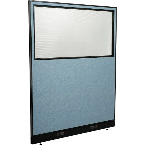 Interion® Electric Office Partition Panel with Partial Window, 60-1/4"W x 76"H, Blue