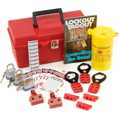 NMC Portable Electrical Lockout Kit w/ 14" Case, Plastic, Red