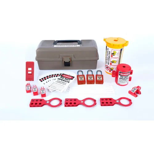 Zing Electrical Lockout/Tagout Toolbox Kit with 33 Components, 13"W x 5"D x 6-1/2"H, Red/Yellow/Gray