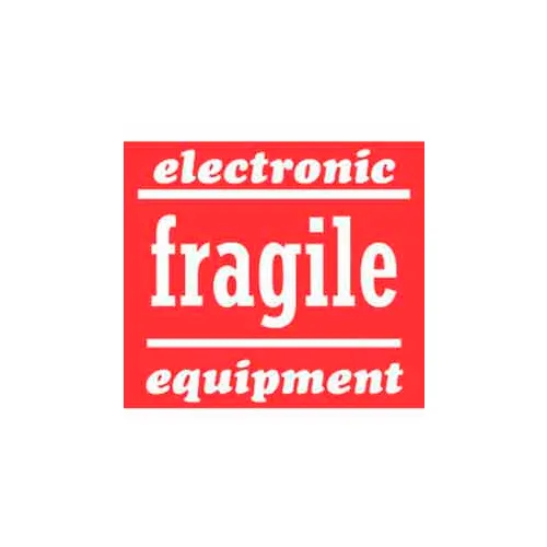 Paper Labels w/ "Electronic Equipment Fragile" Print, 4"L x 4"W, Red & White, Roll of 500