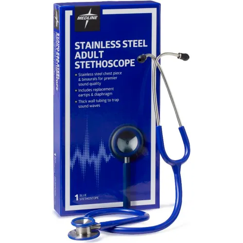 Medline Elite Adult Stethoscope, 22"L Tubing, Blue