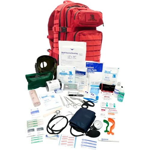 Elite First Aid Tactical Trauma Advanced Backpack with Bleeding Control, 210 Pieces, Fabric Case