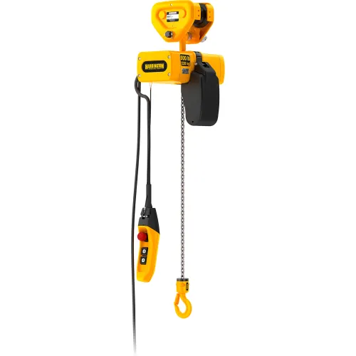 Harrington® EM Mini Electric Chain Hoist with Push Trolley, 250 lb. Capacity, 15' Lift, 230V