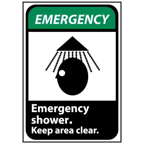 Emergency Sign 14x10 Aluminum - Emergency Shower Keep Area Clear