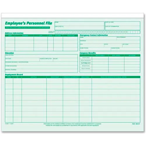Tops® Employee Record File, 25-3/4" x 9-1/2", Green, 20/Pack