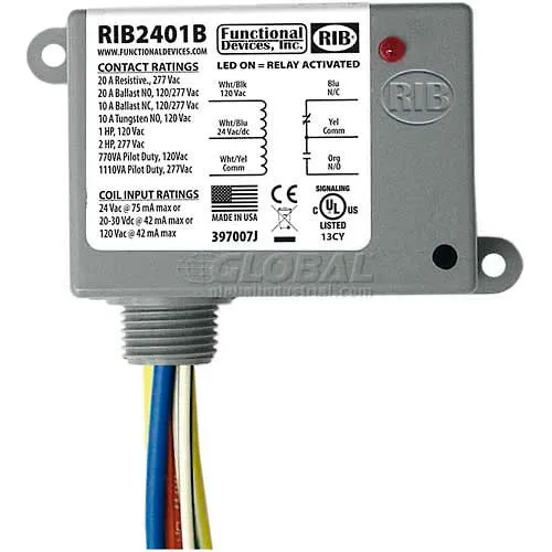 RIB® Enclosed Power Relay RIB2401B, 20A, SPDT, 24VAC/DC/120VAC