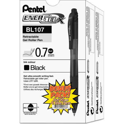 Pentel® EnerGel-X Retractable Gel Pen, 0.7mm Metal Tip, Black Ink/Barrel, 24/Pack