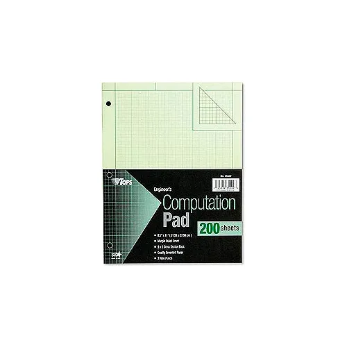 TOPS Engineering Computation Pads, Cross-Section Quad Rule, 100 Green-Tint 8.5" x 11" Sheets