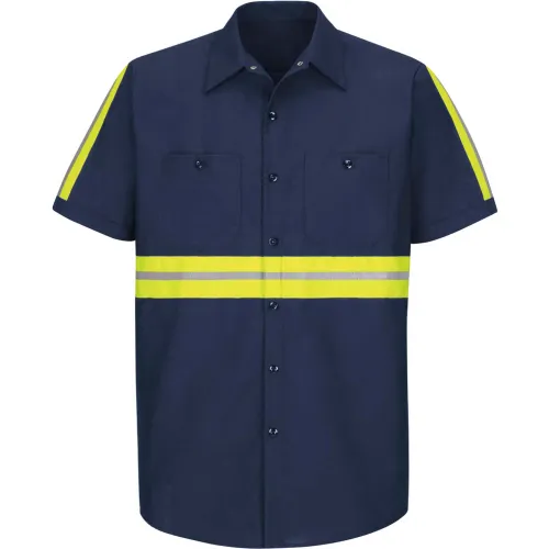 Red Kap® Enhanced Visibility Industrial Short Sleeve Work Shirt, Navy, Poly/Cotton, Regular 2XL