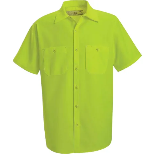 Red Kap® Enhanced Visibility Short Sleeve Work Shirt, Fluorescent Yellow/Green, Regular, 2XL