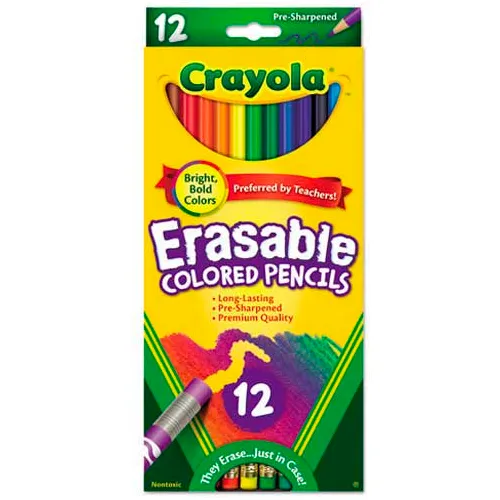 Crayola® Erasable Colored Woodcase Pencils, 3.3 mm, 12 Assorted Colors/Set