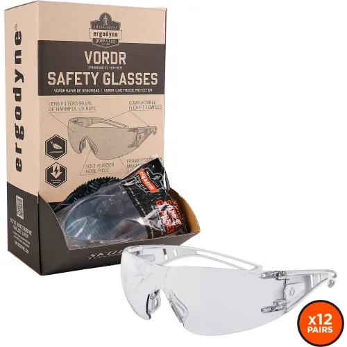 Ergodyne® Skullerz® VORDR Frameless Safety Glasses, Clear Lens, Pack of 12