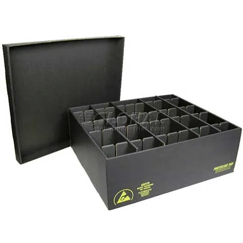 Protektive Pak 38829 ESD In-Plant Handler Adj. Dividers & Lid, 7 Cells, Cell Size 8 x 19-3/4 x 2-1/4 - Pkg Qty 5