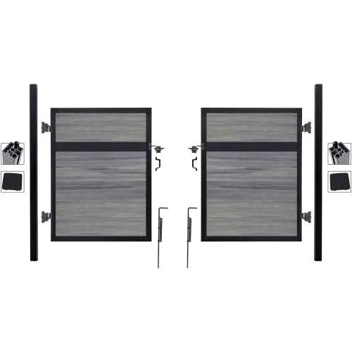 Estate 10'W x 6'H Oxford Grey Aluminum/Composite Adjustable Fence Double Gate Kit- IN GROUND ONLY