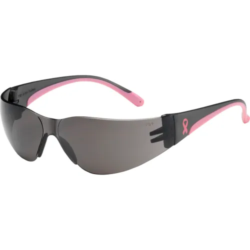 Eva® Petite Anti-Scratch Rimless Safety Glasses w/ Gray/Pink Temple, Gray Lens, Pack of 12