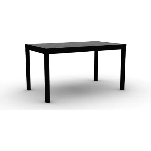 KFI Eveleen Outdoor Rectangular Café Table 55"W x 32"D x 29"H, Black Polymer Top, Blk Aluminum Frame