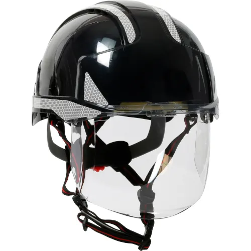 Evo Vista Ascend Industrial Safety Helmet, Type I, Vented, ABS Shell, Integrated Faceshield, Black