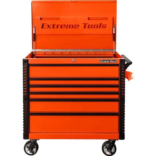 Extreme Tools EX 6-Drawer Tool Cart with Bumpers, 41-3/4"W x 25-3/4"D x 43"H, Orange with Black Trim