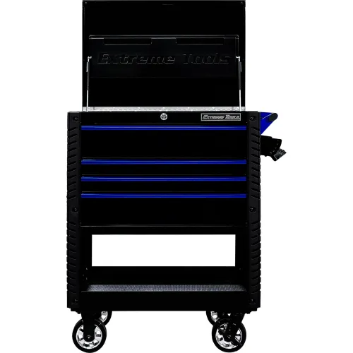 Extreme Tools EX Professional Deluxe Tool Cart, 33"W x 22-7/8"D x 44-3/8"H,Black w/Blue Drawer Pulls