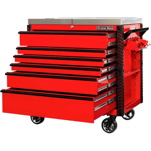 Extreme Tools EX4106TCRDBK 41"W x 25-3/4"D x 43-7/8"H 6 Drawer Red Flip Top Tool Cart Black Pulls