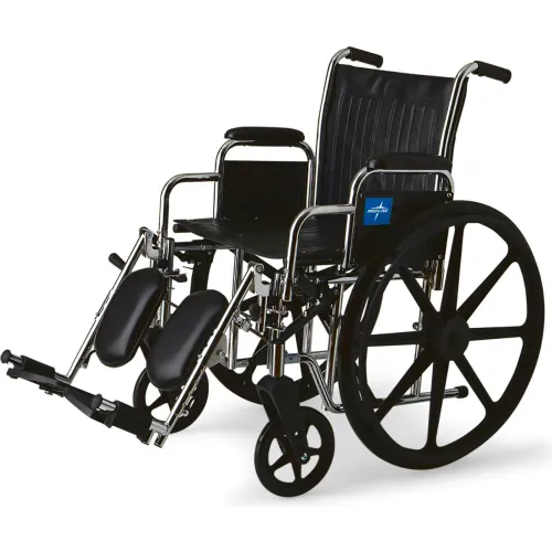 Medline Excel Wheelchair w/ Removable Desk-Length Arms & Elevating Leg Rests, Black, 18"W Seat