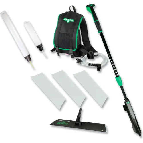 Unger® Excella Floor Finishing Kit, 20"L Microfiber Head with 48"-65" Handle, Black/Green