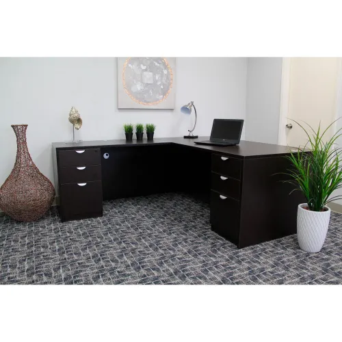 Boss® Executive L-Shaped Desk with Double Pedestal Drawer Unit, 84"W x 71"D x 29-1/2"H, Mocha