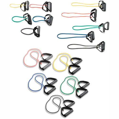 CanDo® Exercise Tubing with Handles, Full Body Set -18", 36", 48"), 5 Color Set