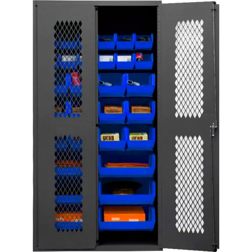 Durham Expanded Metal Door Bin Cabinet EMDC-362472-30B-5295 - 30 Blue Bins 36"W x 24"D x 72"H
