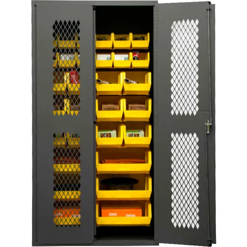 Durham Expanded Metal Door Bin Cabinet EMDC-361872-30B-95 - 30 Yellow Bins 36"W x 18"D x 72"H