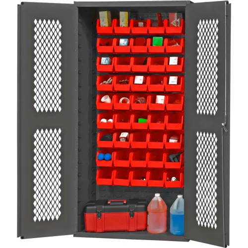 Durham Expanded Metal Door Bin Cabinet EMDC361845B1795 - 45 Red Bins 36"W x 18"D x 72"H