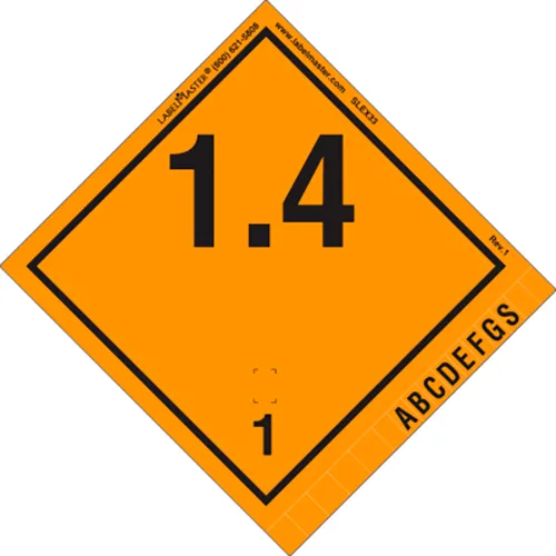 LabelMaster® Explosive "1.4" International Vinyl Label, 4"L x 4"W, Black/Orange, Roll of 500