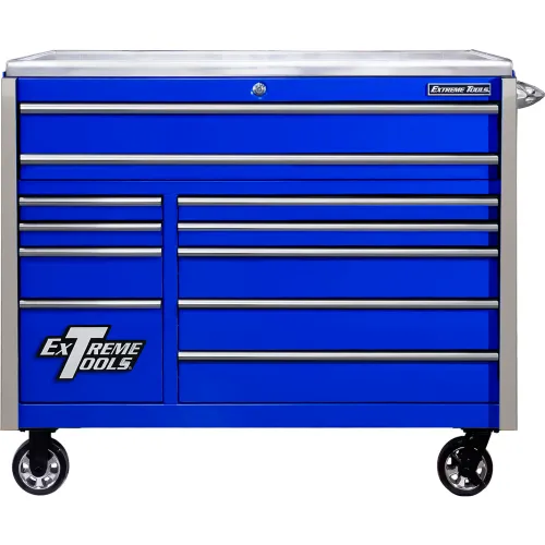 Extreme Tools EXQ Pro Roller Cabinet, 55"W x 30"D x 46-5/8"H, Blue with Chrome Drawer Pulls & Trim