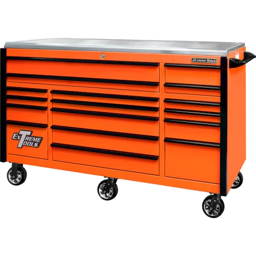 Extreme Tools EXQ Pro Triple Bank Roller Cabinet, 72"W x 30"D x 46-5/8"H,Orange w/Black Drawer Pulls