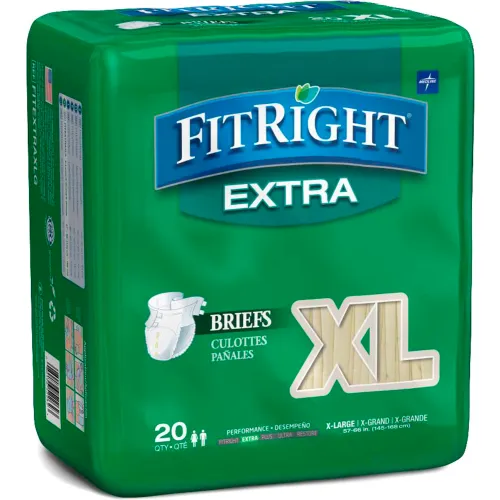 Medline® FitRight Extra Adult Disposable Briefs, Size XL, Waist Size 57"-66", 20/Bag