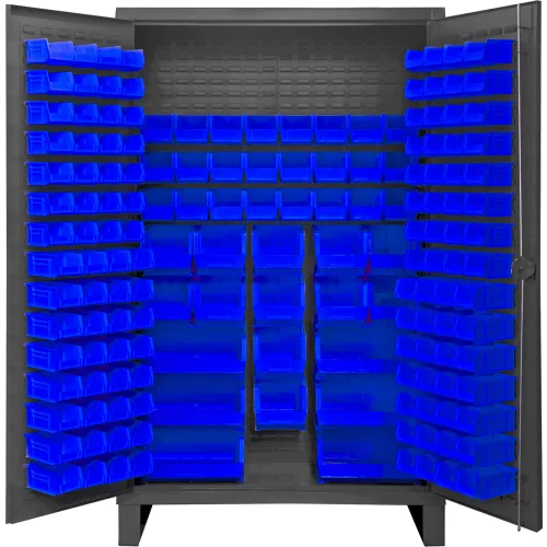 Durham Mfg.® Extra HD Bin Storage Cabinet, 162 Blue Bins,All-Welded,48-3/16"W x 24-1/8"D x 78"H
