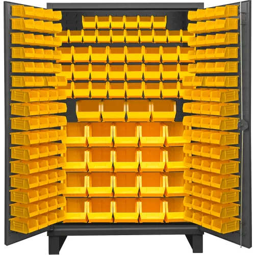 Durham Mfg.® Extra HD Bin Storage Cabinet, 192 Yellow Bins, 48-3/16"W x 24-1/8"D x 78"H