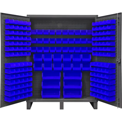 Durham Mfg.® Extra HD Bin Storage Cabinet, 198 Blue Bins,All-Welded,60-3/16"W x 24-1/8"D x 78"H