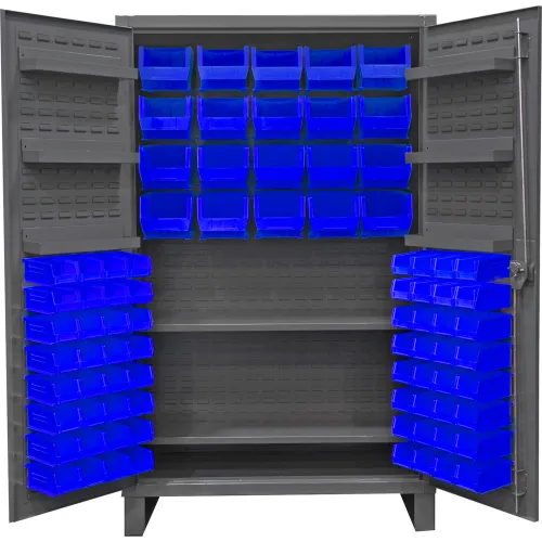 Durham Mfg.® Extra HD Bin Storage Cabinet, 84 Blue Bins, All-Welded,48-3/16"W x 24-1/8"D x 78"H
