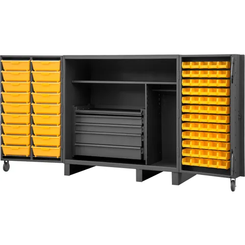Durham Mfg.® Extra Heavy Duty Cabinet, 78 Yellow Bins, All-Welded, 60"W x 36"D x 60"H