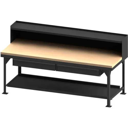 Durham Mfg. Storage Workbench W/ 2 Drawers & Riser, Maple Square Edge, 96"W x 36"D, Gray