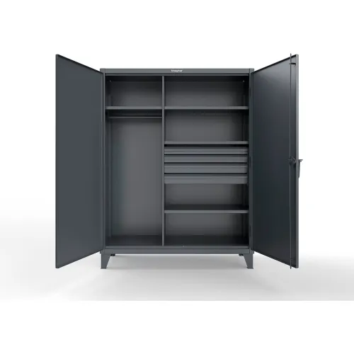 Strong Hold® Extra Heavy Duty Uniform Cabinet w/4 Drawer, 3 Shelves, 60"W x 24"D x 78"H, Gray