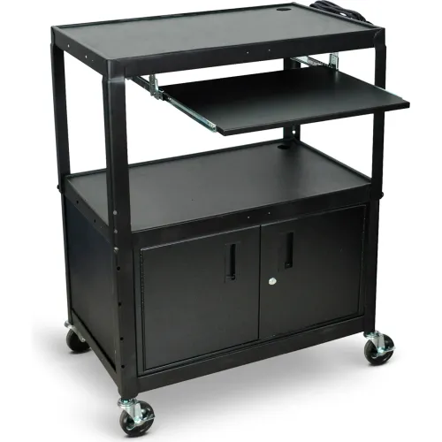 Luxor Extra-Large Adj-Height Steel Cart w/Pullout Keyboard Tray & Cabinet, 32"W x 20"D x 24" to 42"H