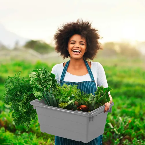 Quantum® Cross Stack Nest Tub, 17-1/4"L x 11"W x 12"H, Gray, Polypropylene - Pkg Qty 6