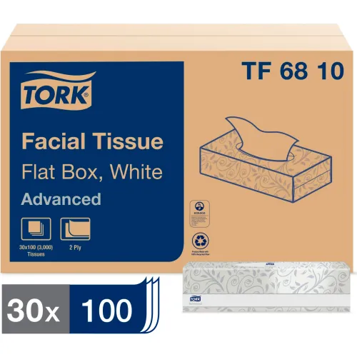 Tork Advanced Extra Soft, 2-Ply Facial Tissue, White, 100/Box, 30/Case - TF6810
