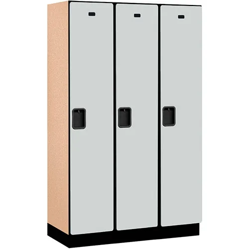 Salsbury 1-Tier 3 Door Extra Wide Wood Locker, 45"W x 18"D x 76"H, Gray, Partially Assembled