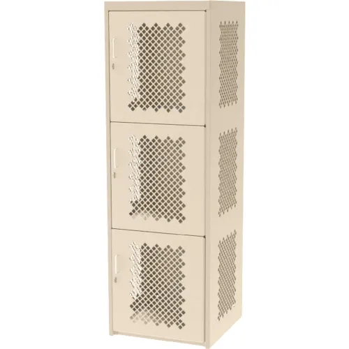 Global Industrial 3-Tier 3 Door Heavy Duty Vented Locker, 24"Wx24"Dx74"H, Putty, All-Welded