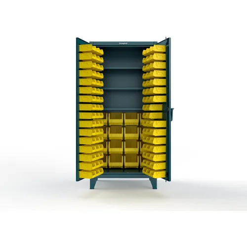 Strong Hold® Extreme Duty Bin Cabinet, 3 Shelves, 110 Bins, 36"W x 24"D x 78"H, Blue